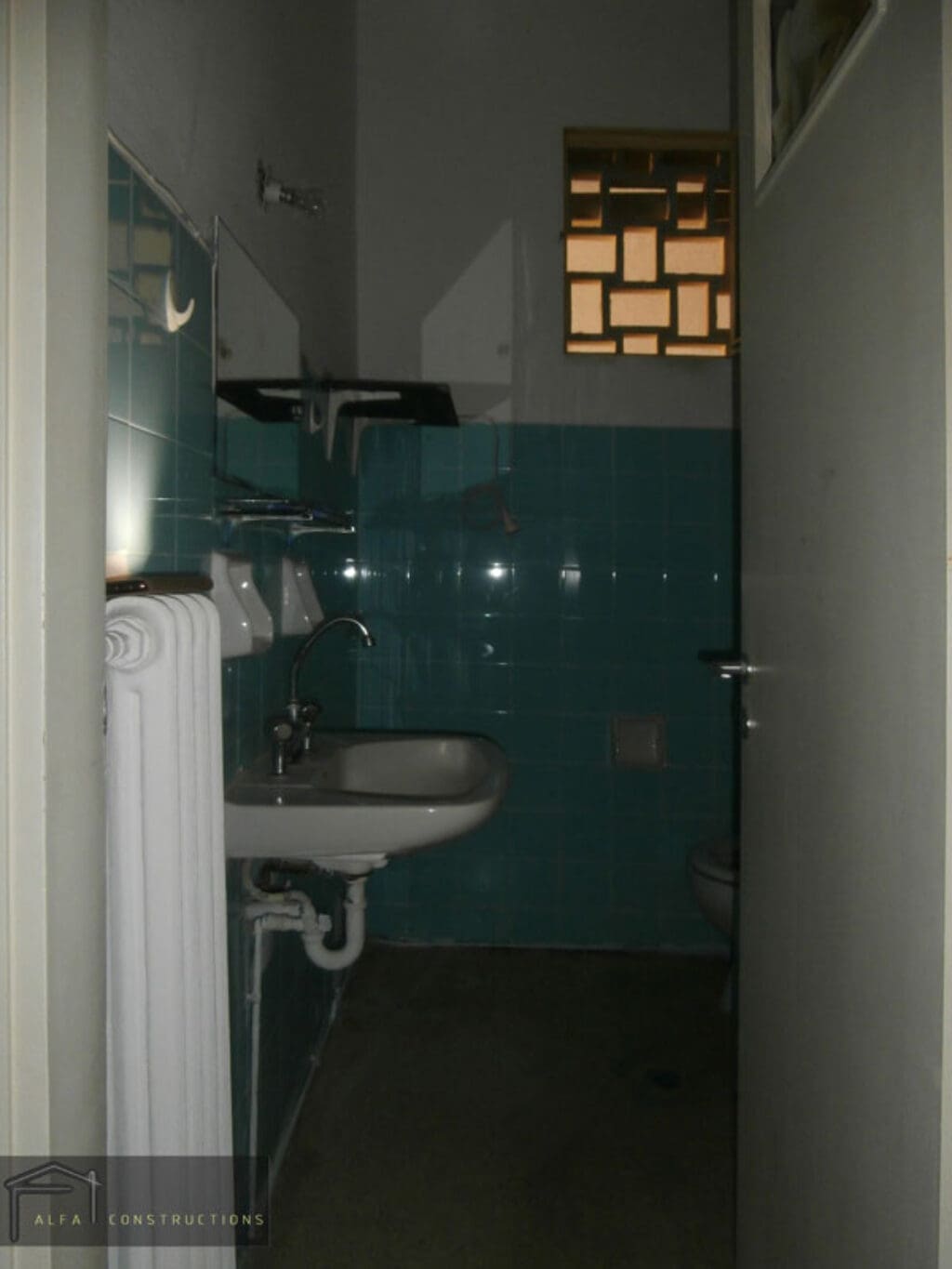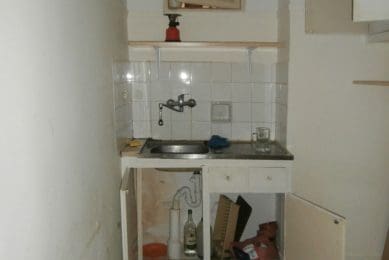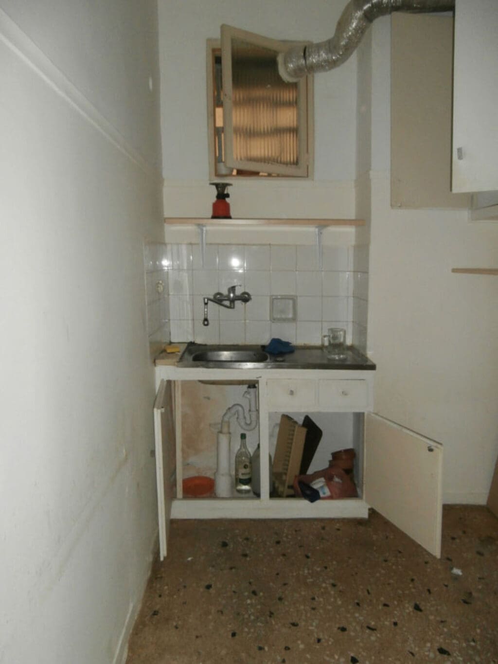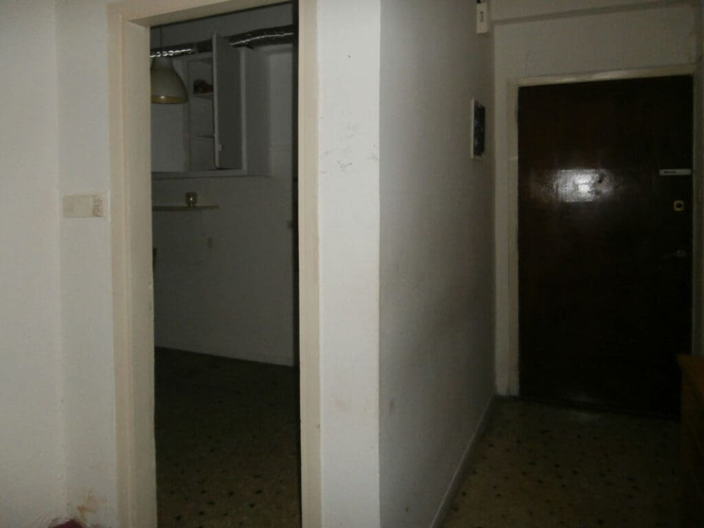 Η διαμόρφωση των χώρων της κατοικίας περιορίστηκε στην καθαίρεση του τοίχου μεταξύ κεντρικής εισόδου και κουζίνας.