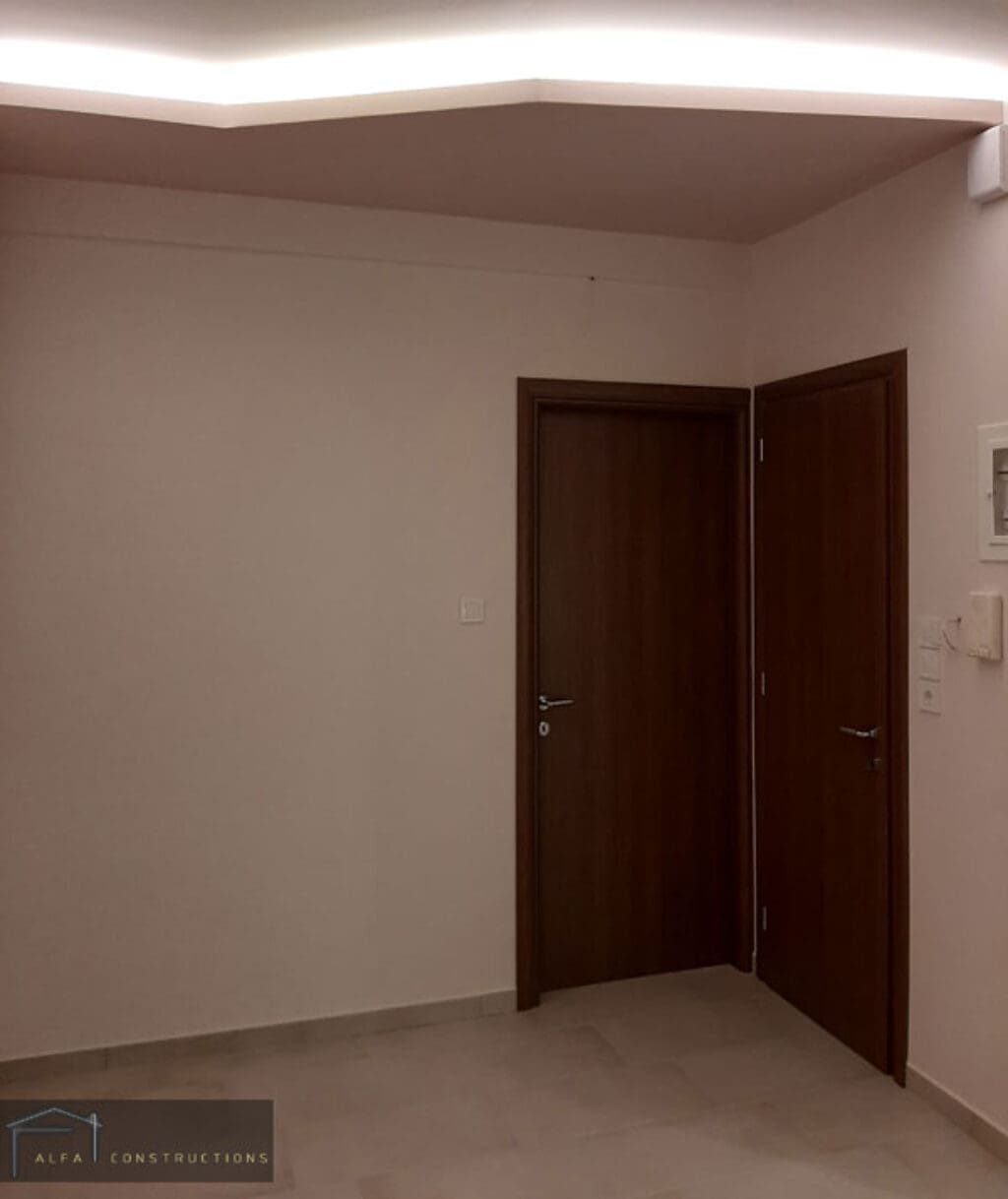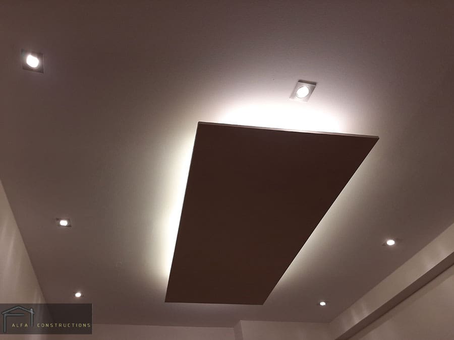 Συνεχίσαμε την επισκευή με τις γυψοσανίδες οροφής και την εγκατάσταση κρυφών φωτισμών αλλάζοντας έτσι την εικόνα του.