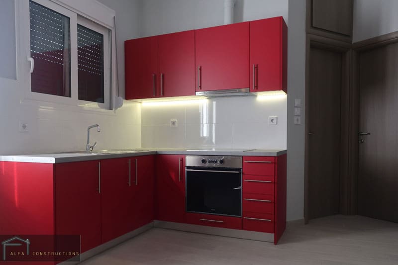 Κατασκευάσαμε νέα έπιπλα κουζίνας, ανοιγόμενες ντουλάπες, εσωτερικές πόρτες laminate, θωρακισμένη πόρτα ασφαλείας.