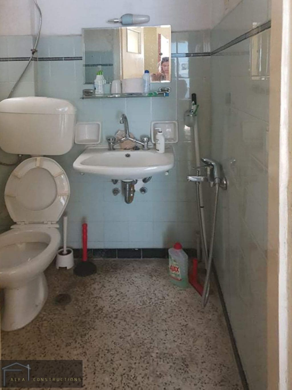 Χωρίς αλλαγές στην διαμόρφωση του εσωτερικού χώρου της γκαρσονιέρας, ξεκινήσαμε τις επισκευές, με την γενική αλλαγή των παλαιών υδραυλικών (μπάνιου, κουζίνας) και ηλεκτρολογικών εγκαταστάσεων της κατοικίας.