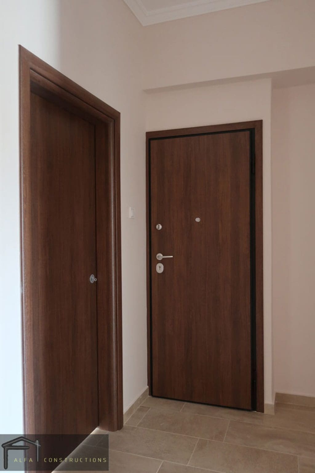Τοποθετήθηκαν κουφώματα αλουμινίου με ενεργειακά τζάμια και θωρακισμένη πόρτα ασφαλείας.