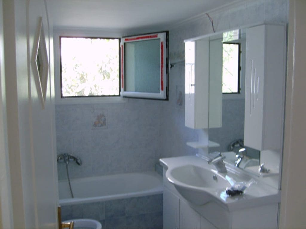 Ξεκινήσαμε με τις αποξηλώσεις και έγιναν καθαιρέσεις των τοίχων, ηλεκτρολογικές-υδραυλικές εγκαταστάσεις στους χώρους του μπάνιου και της κουζίνας και εγκαταστήσαμε κολεκτέρ ύδρευσης με πολυστρωματικούς αγωγούς ζεστού-κρύου.