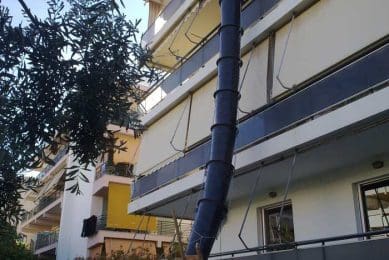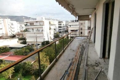 Εξωτερικά συνεχίσαμε με την αποξήλωση των καγκέλων των μπαλκονιών, το τρίψιμο-γυάλισμα των μαρμάρων, την μόνωση της ταράτσας.