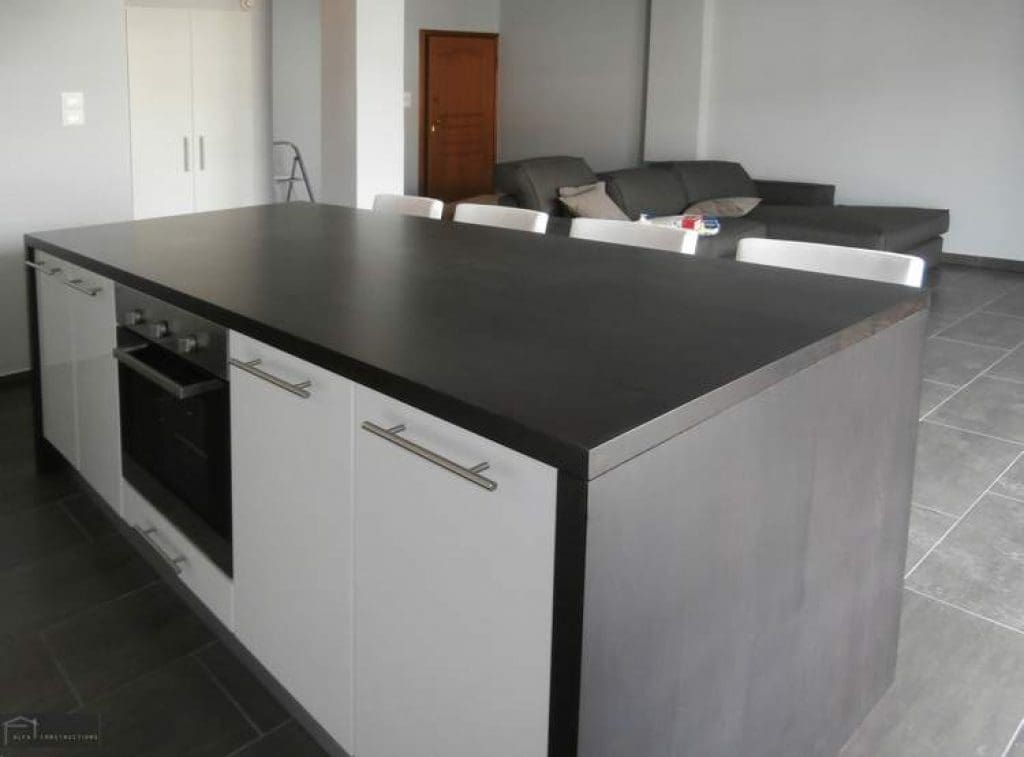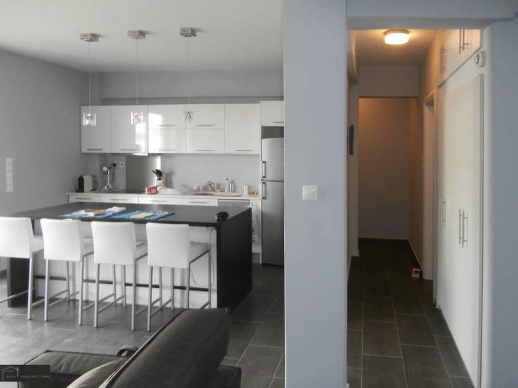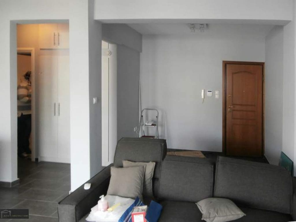 Έγινε αλλαγή θέσης της κουζίνας στον χώρο του σαλονιού.