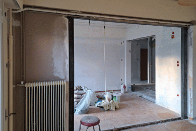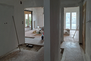 Η διαδικασία των εργασιών τέθηκε σε εφαρμογή με τις γενικές αποξηλώσεις, τις καθαιρέσεις των τοίχων, την ηλεκτρολογική και την υδραυλική εγκατάσταση.
