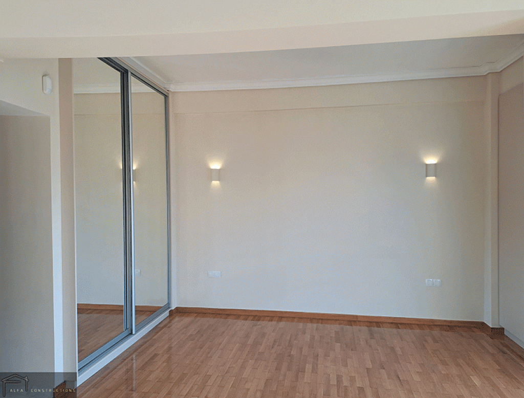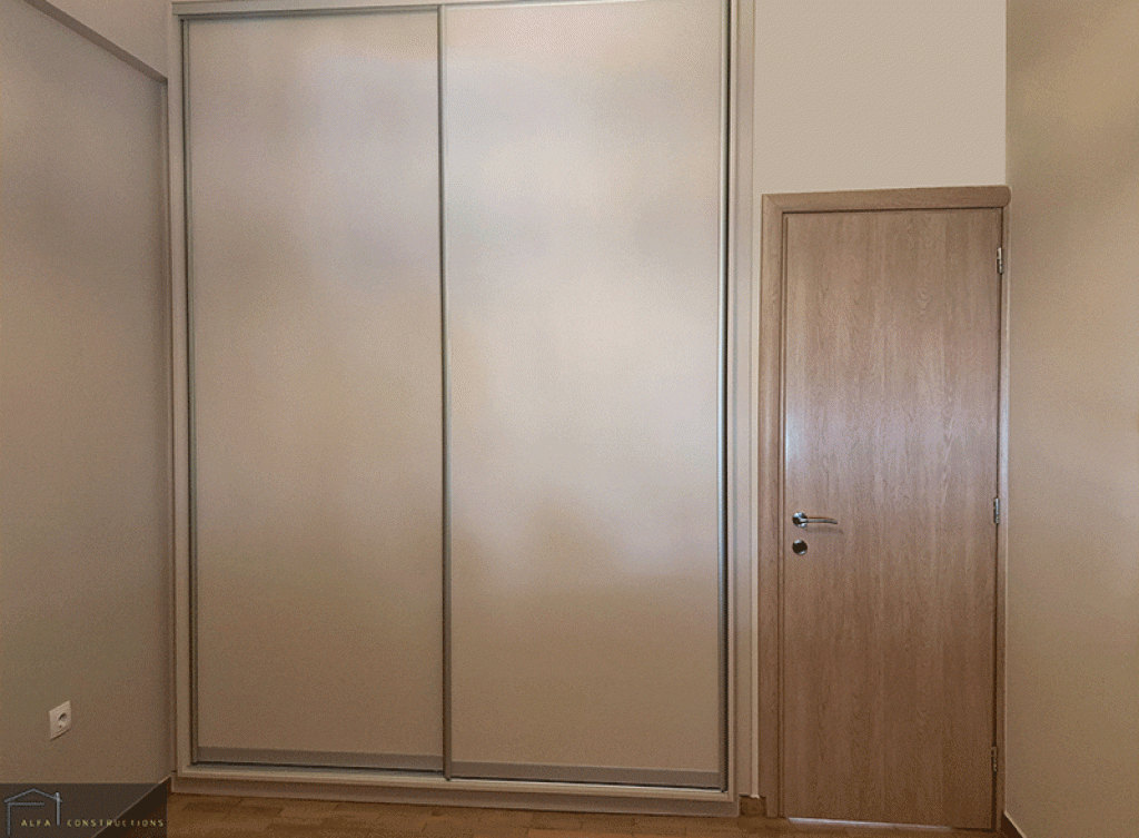 Εξοικονομώντας ταυτόχρονα χώρο αποθήκευσης και μεγέθυνση του living room, τοποθετήθηκε συρόμενη ντουλάπα σε αυτό, η οποία επενδύθηκε με καθρέφτη. Επιπροσθέτως και στο master υπνοδωμάτιο για την βελτίωση οργάνωσης του χώρου εγκαταστάθηκε ντουλάπα συρόμενης λειτουργίας.
