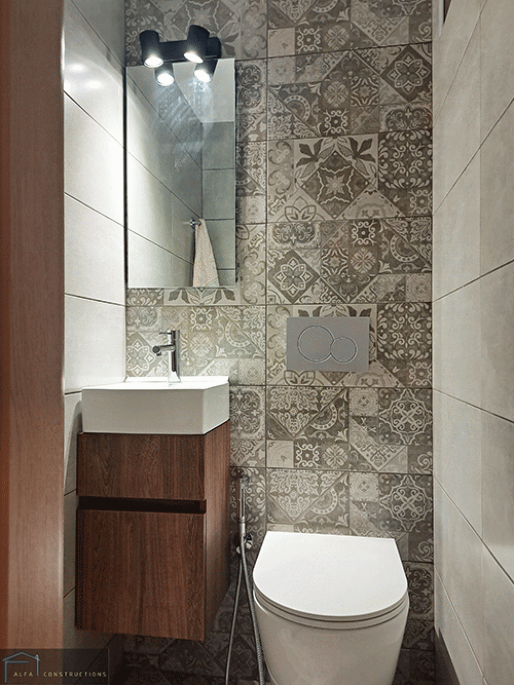 Στη συνέχεια το μικρό wc ανακαινίστηκε πλήρως και δημιουργήθηκε ένας όμορφος χώρος που ενθουσιάζει τον εκάστοτε επισκέπτη με το έντονο μοτίβο των πλακιδίων που χρησιμοποιήθηκαν.