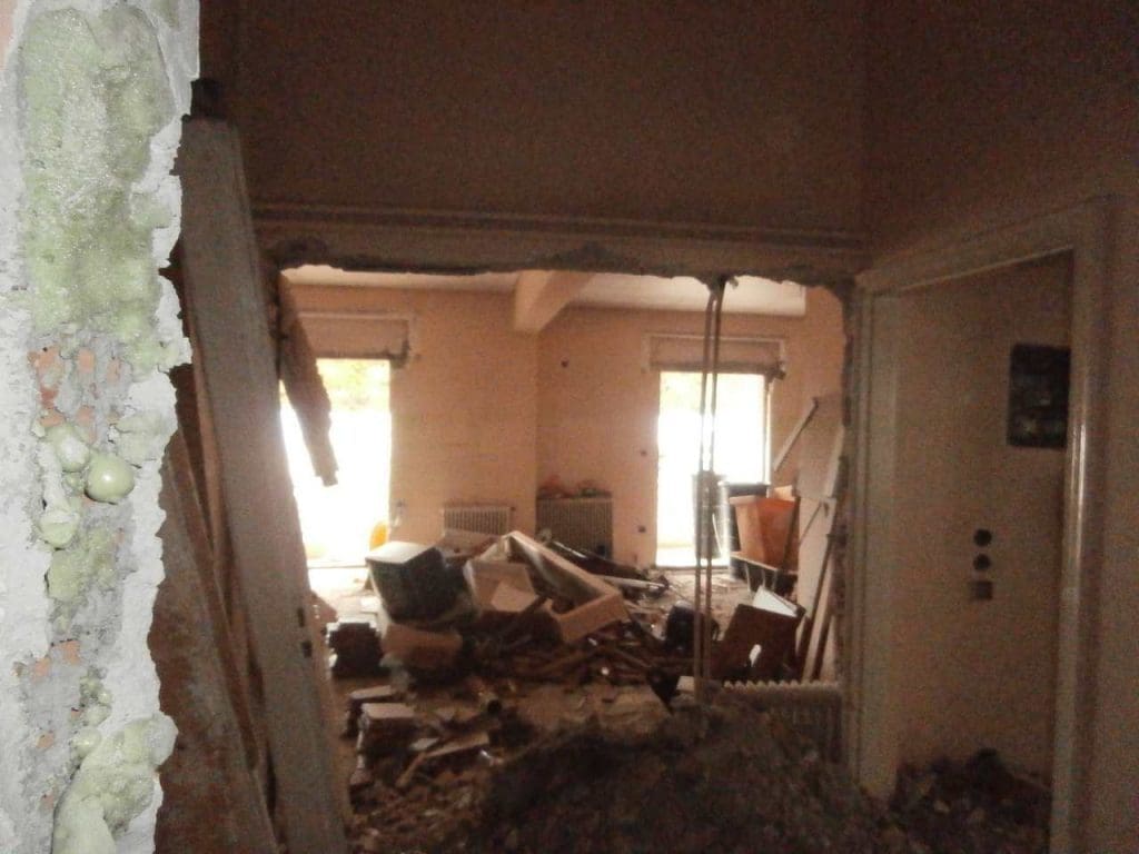 Ξεκινώντας πάντα από τις αποξηλώσεις περάσαμε στην καθαίρεση των τοίχων.