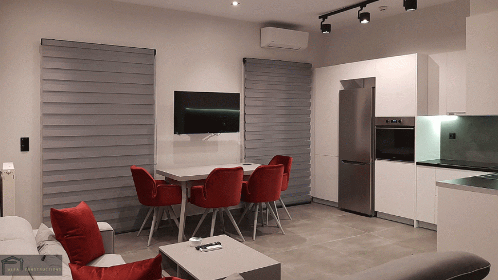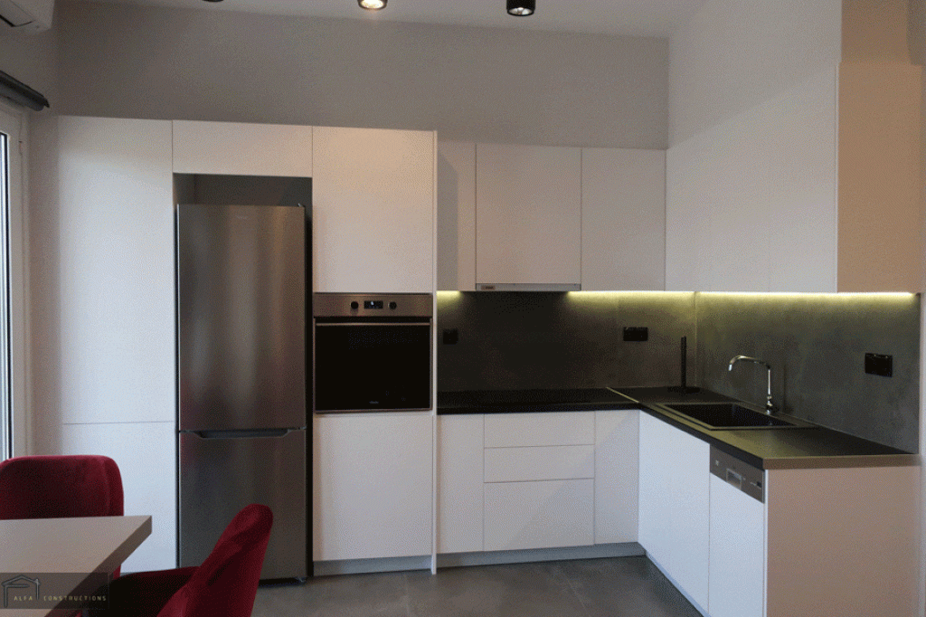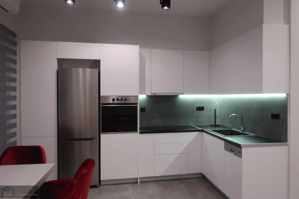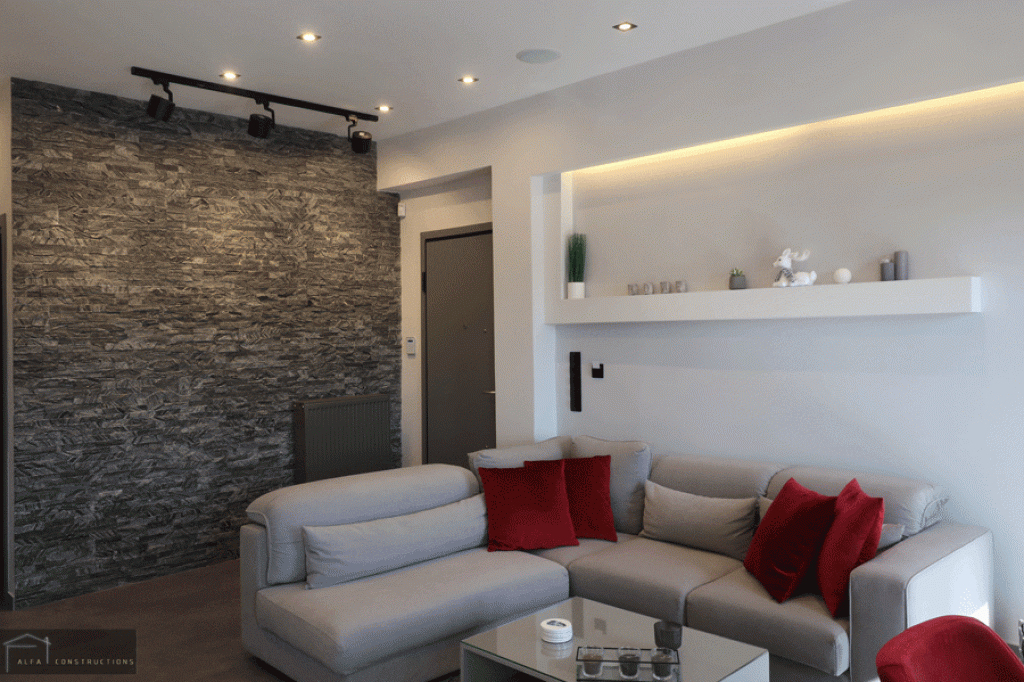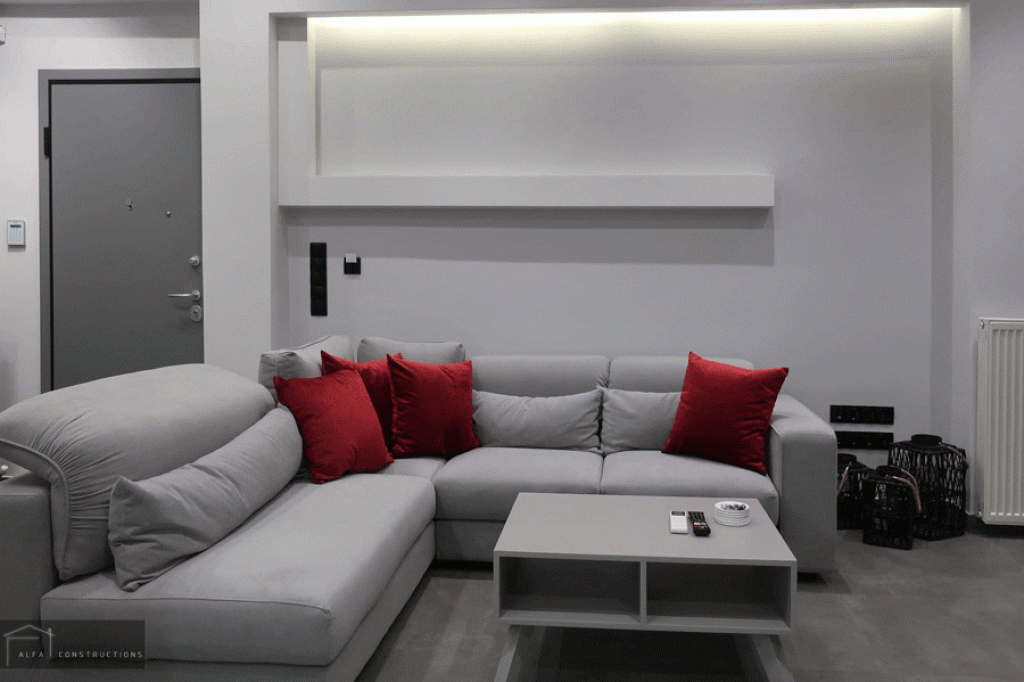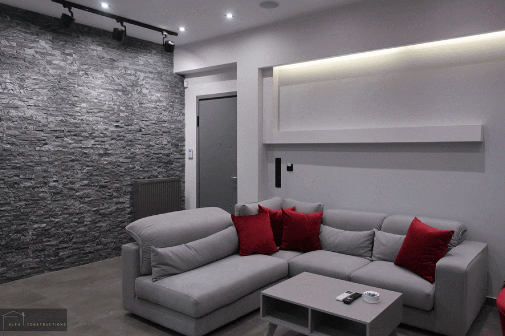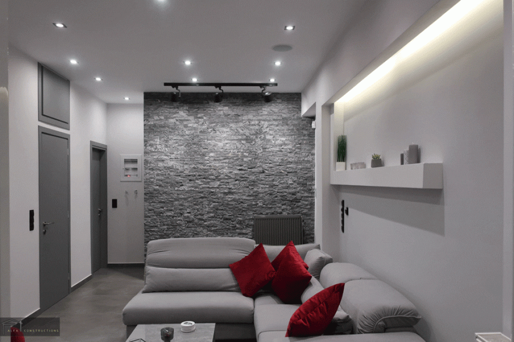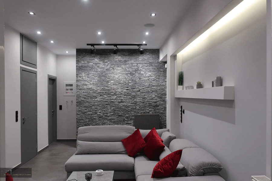 Τέλος πραγματοποιήθηκε ο ελαιοχρωματισμός του διαμερίσματος, η τοποθέτηση συναγερμού – καμερών και το έργο ολοκληρώθηκε με την τοποθέτηση φωτισμού δίνοντας έμφαση στον κάθε χώρο.