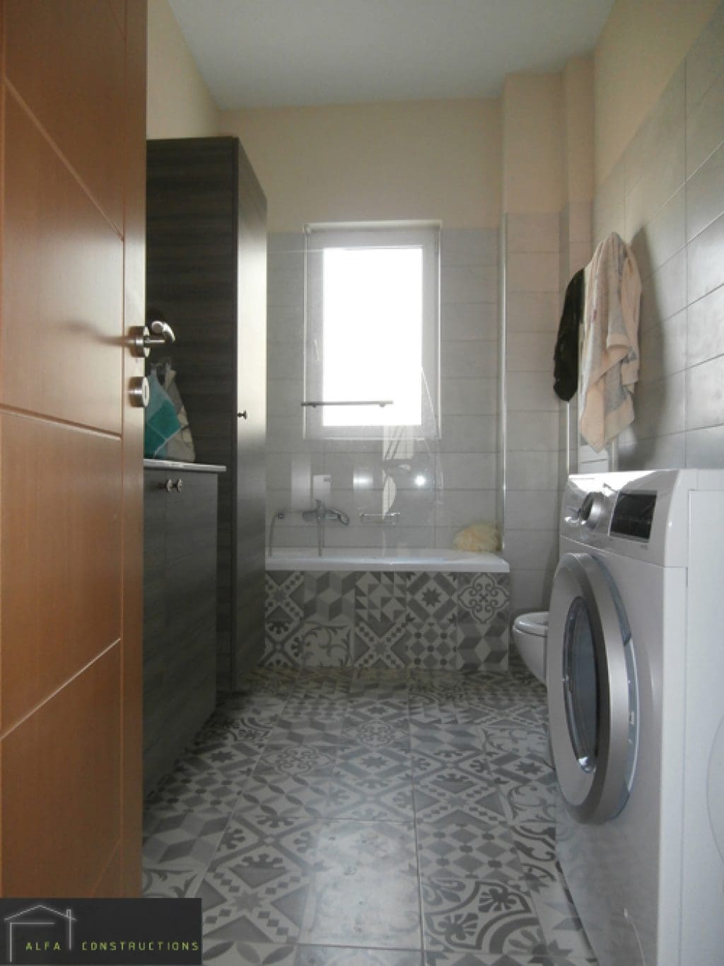 Πραγματοποιήθηκε γενική ανακαίνιση του μπάνιου και του w.c. και τοποθετήθηκαν θερμαντικά σώματα.